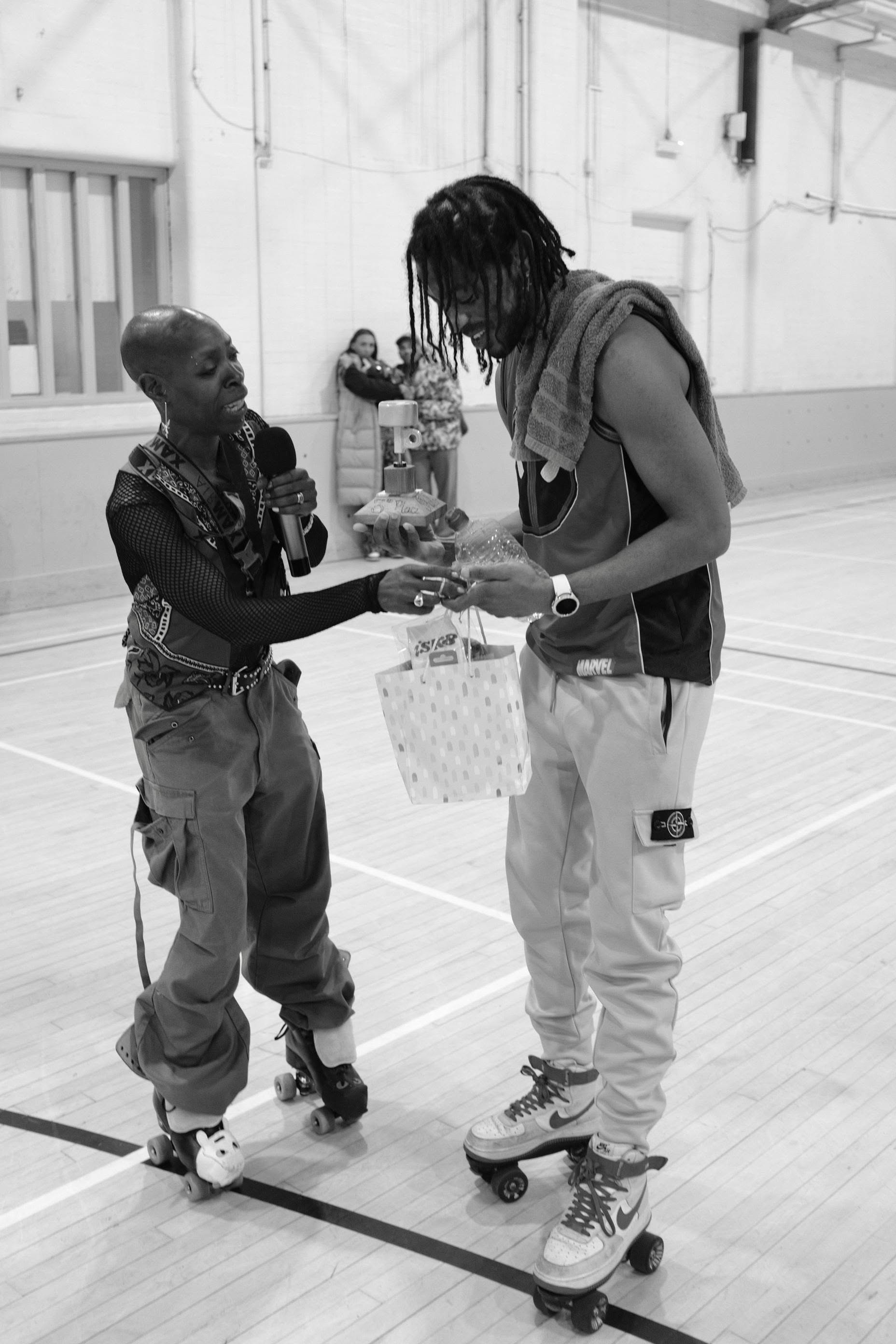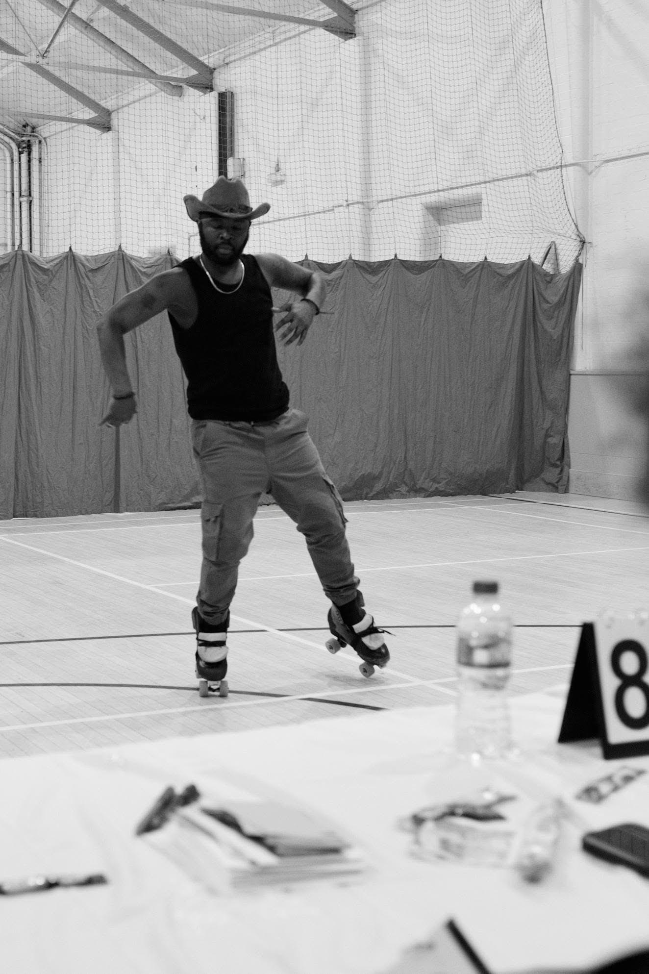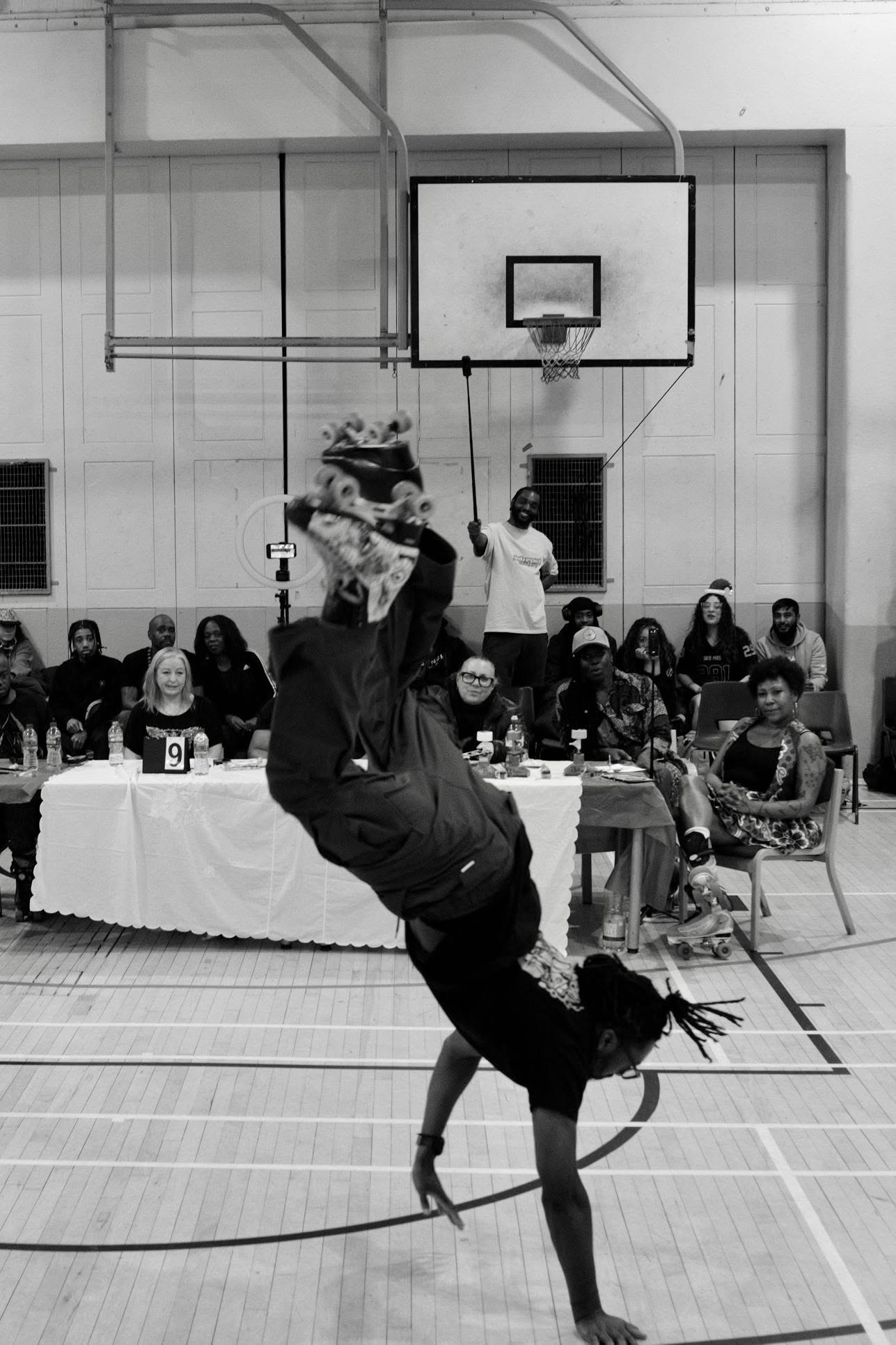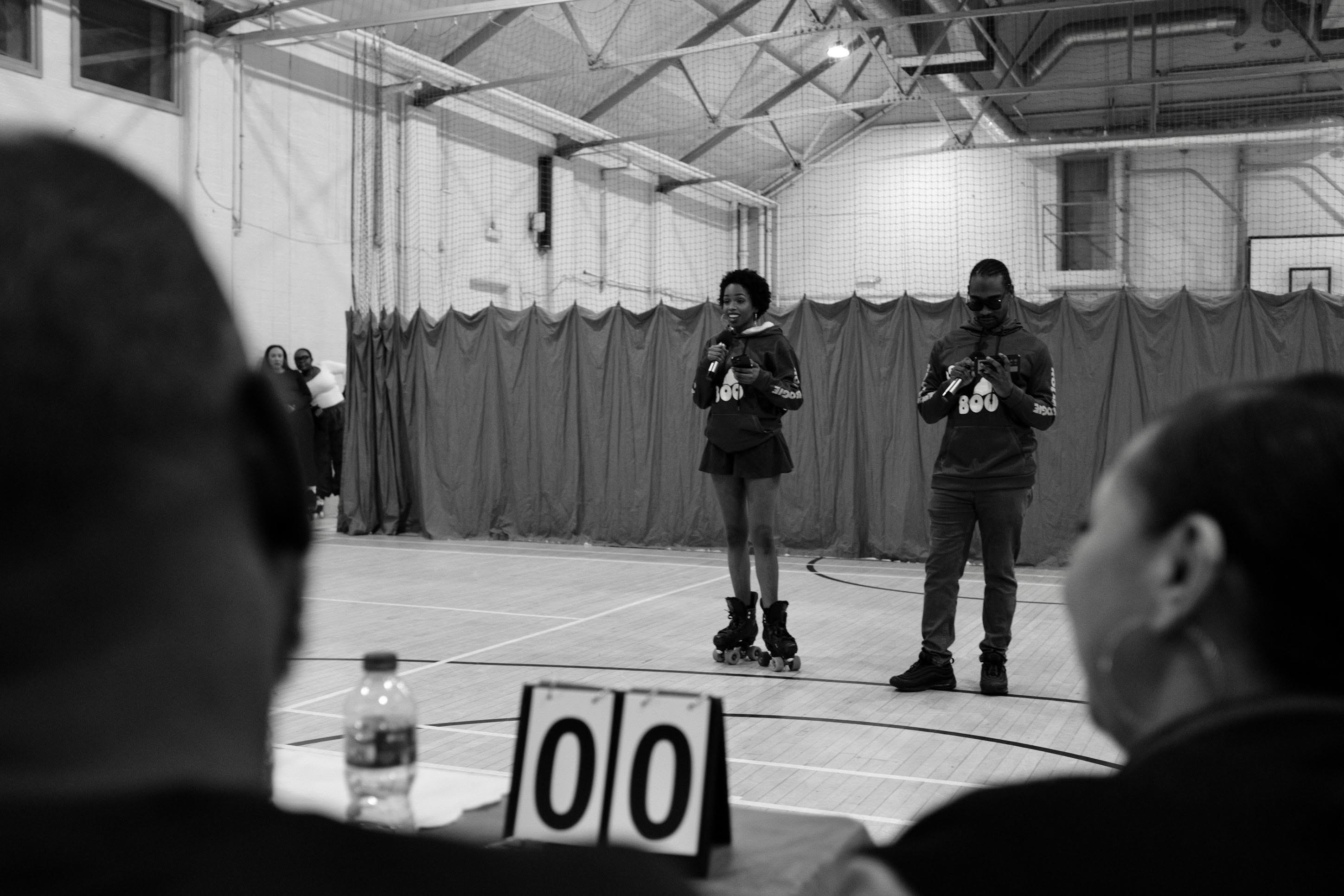 The event kicked off with a lovely open skate using half of the gymnasium. Skaters needed no encouragement at all to utilise the space, warming up and enjoy the smooth wooden floor. You could feel the undercurrent of excitement, mixed with buoyant anticipation — competitors, organisers and spectators alike preparing for the evening's showcase lineup.