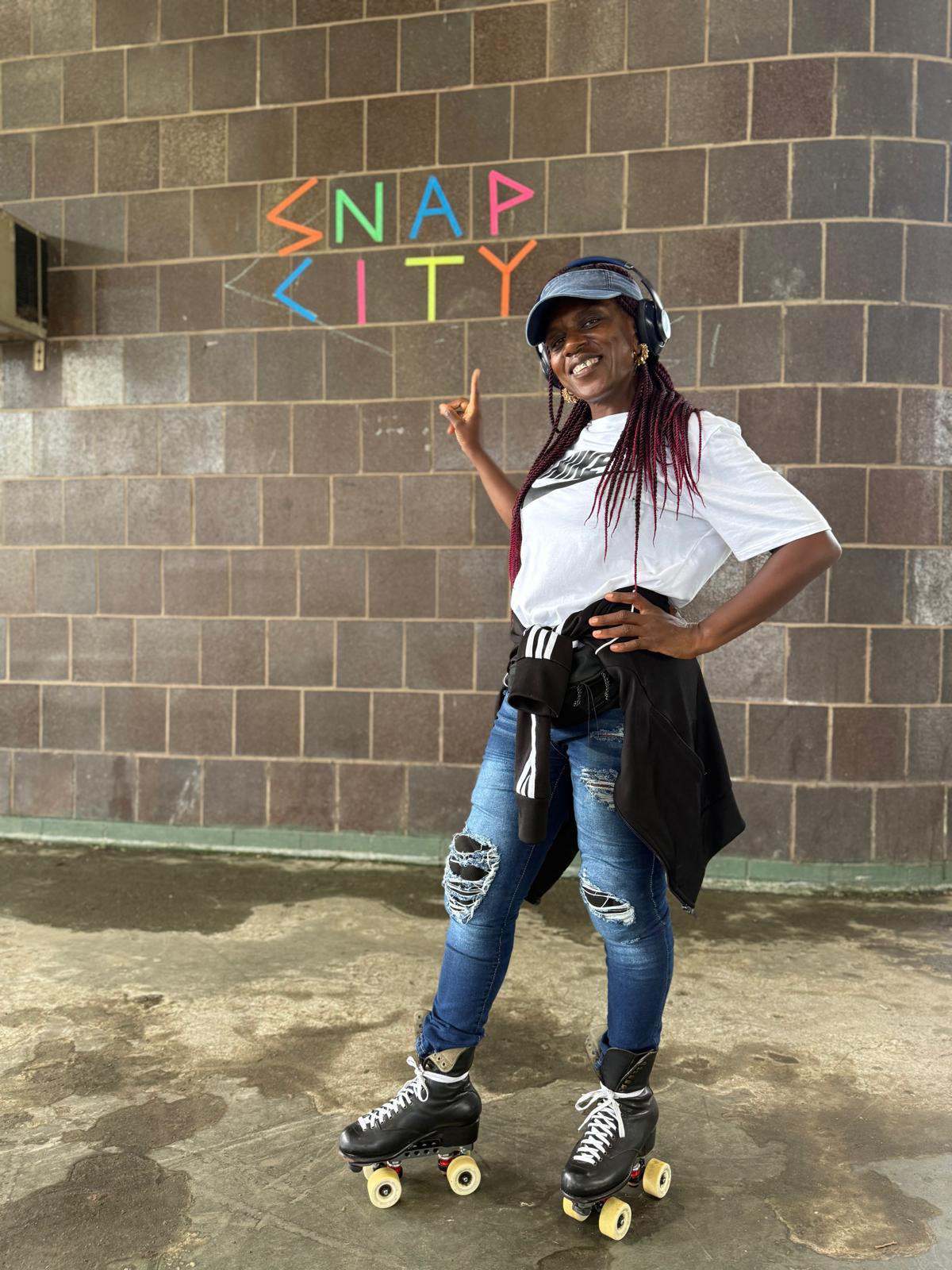 "My mom got me some skates when I was younger, but I don't remember, actually, skating on them. I was like, maybe maybe 11 or 12. Anyway, in my later life, one of my friends kept saying, get some skates, get some skates. And I was like, nah, nah. So then, I tried on her skates one day in the garden, and I was like, oh my god. I felt like, yeah, this feels good. I was 49. So then we used to go to our local park where we grew up and we played hockey, chase each other and have a laugh. I didn't even know how to skate. Then I went to Slick Willies and bought a pair of Venture Pros. And, yeah, so that was good. So that was my first experience of like, really being on roller skates and enjoying it."