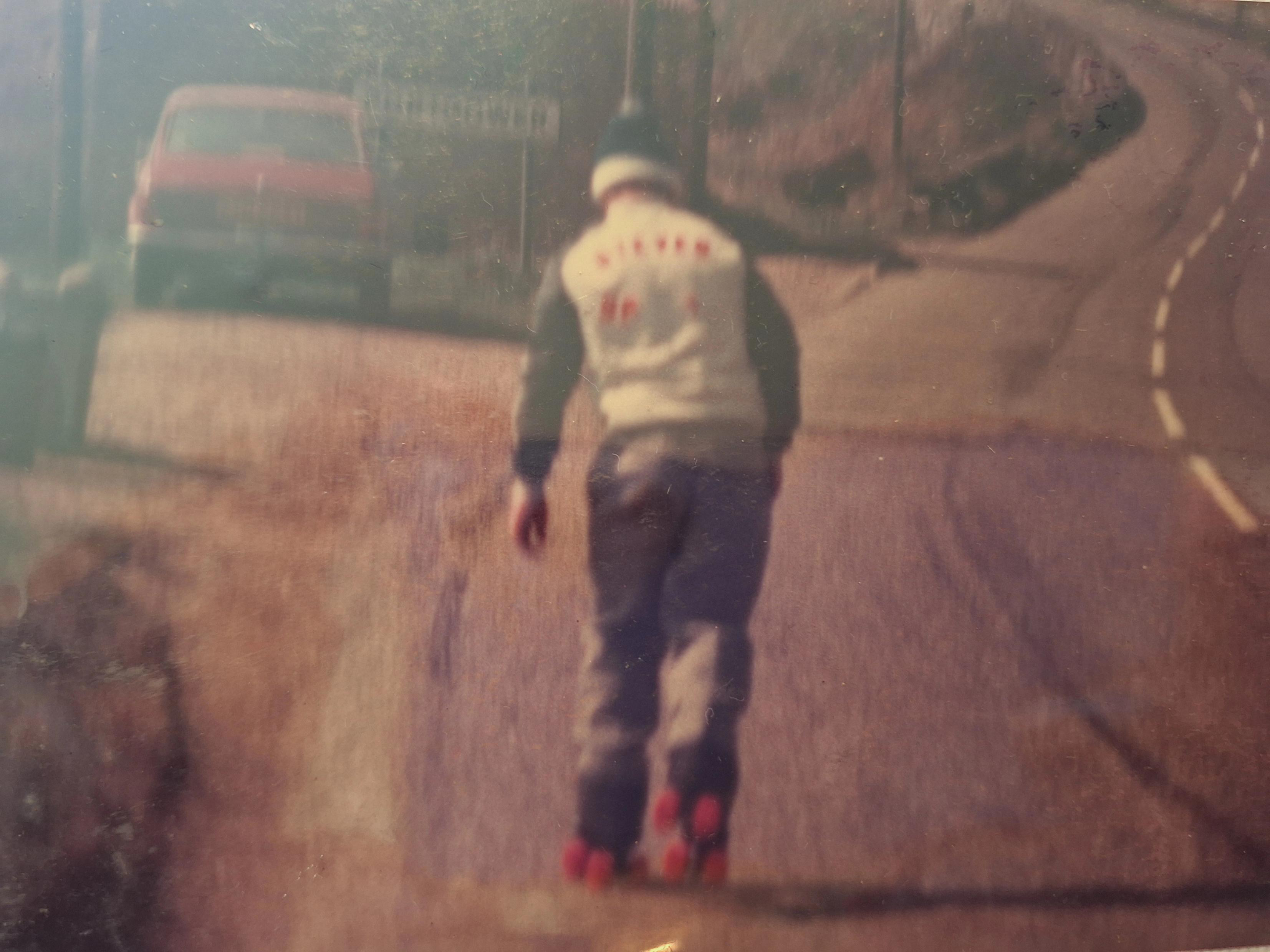 Then on my first skates as a joke, I actually got these blue and yellow skates from Shelly's on the Kings Road. Yeah. Yeah, mad! They cost about, 40 quid, 50 quid, something like that, the wheels are a bit slow, but, you know, I was only at beginning then. I was like 18."